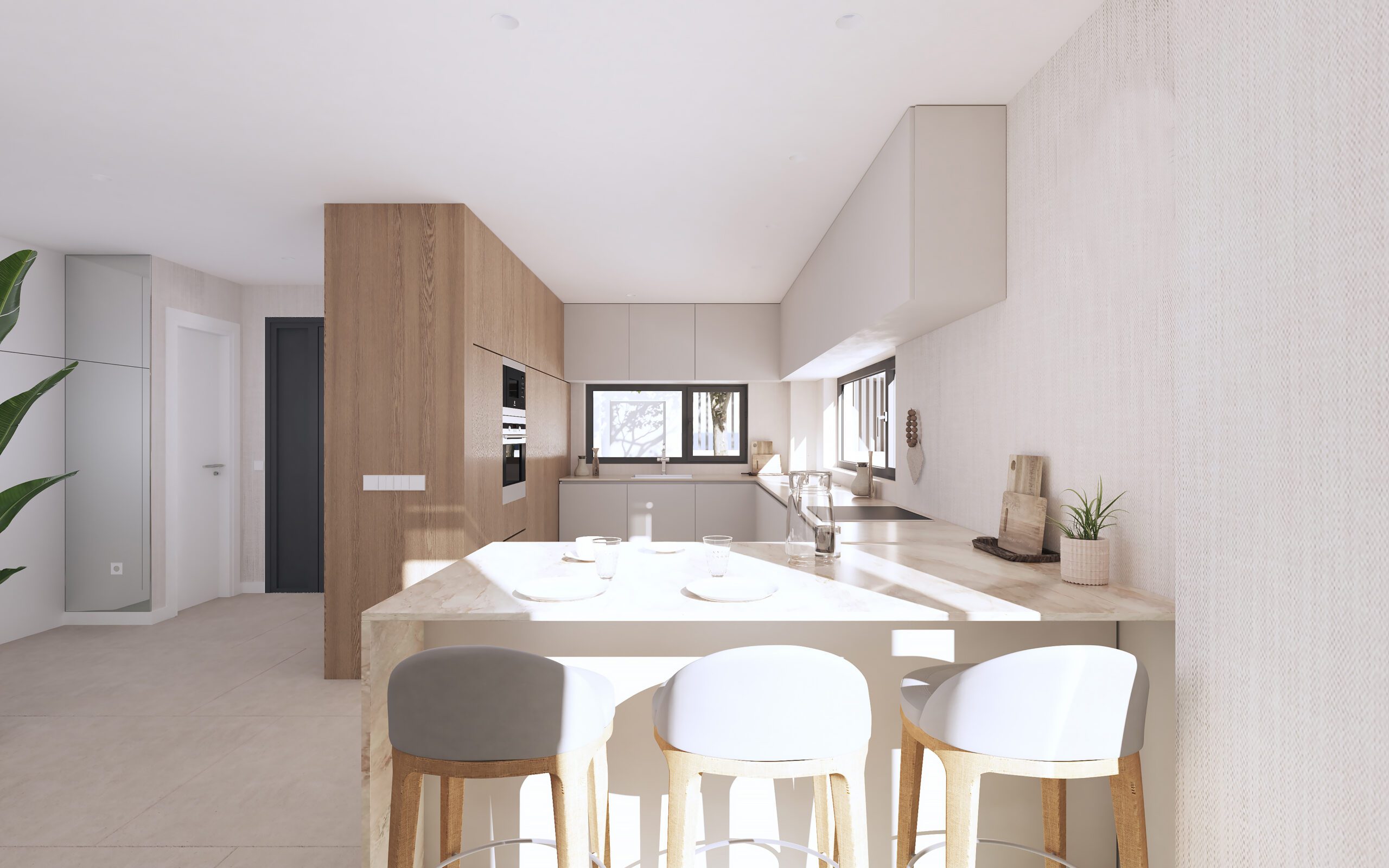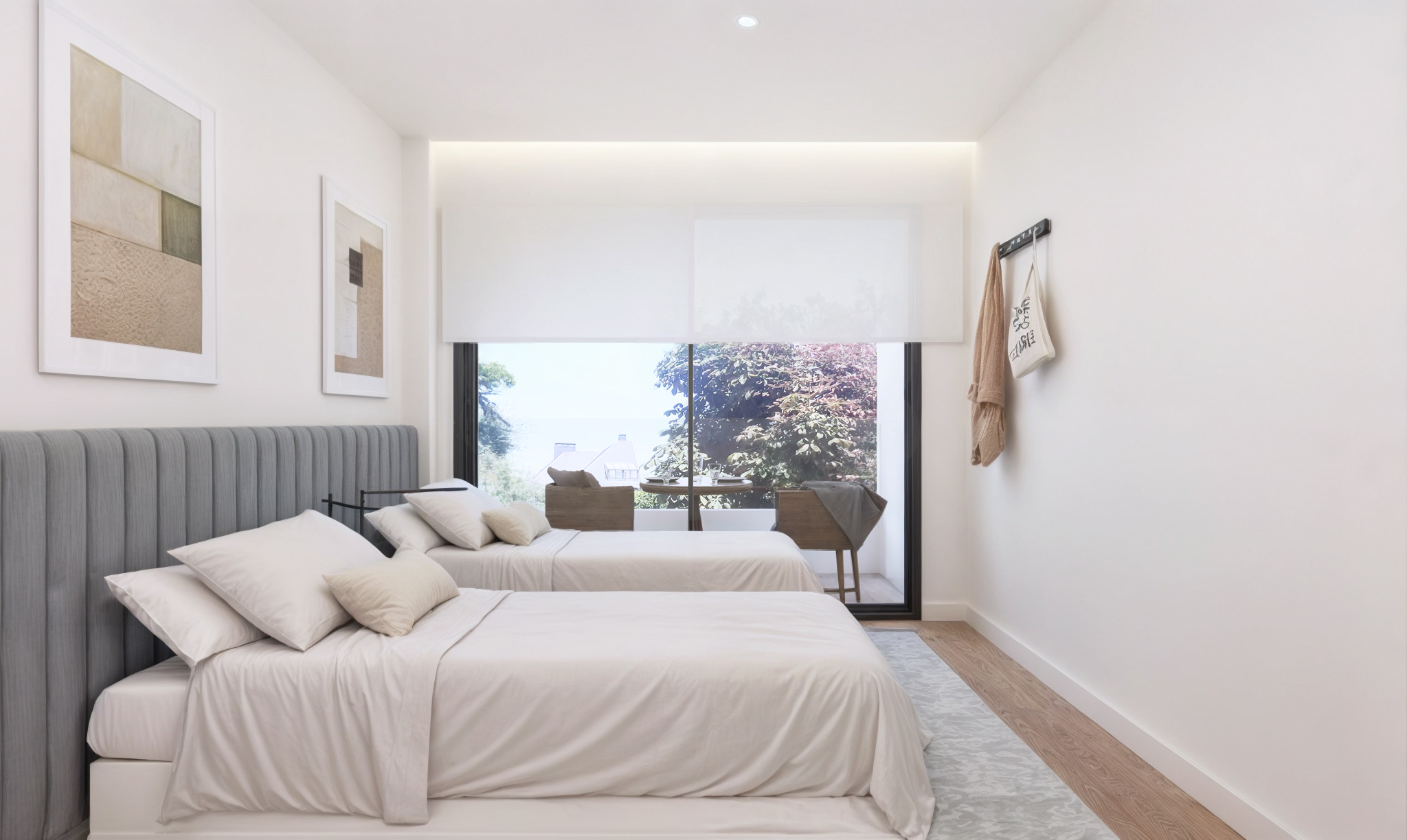 Las Villas cuentan con suelo radiante para calefacción y refrigeración, sistema individual de aerotermia para la producción de Agua Caliente Sanitaria y clima, persianas motorizadas, doble acristalamiento bajo emisivo, cocina totalmente equipada y acabados cuidadosamente seleccionados, entre otras prestaciones.
