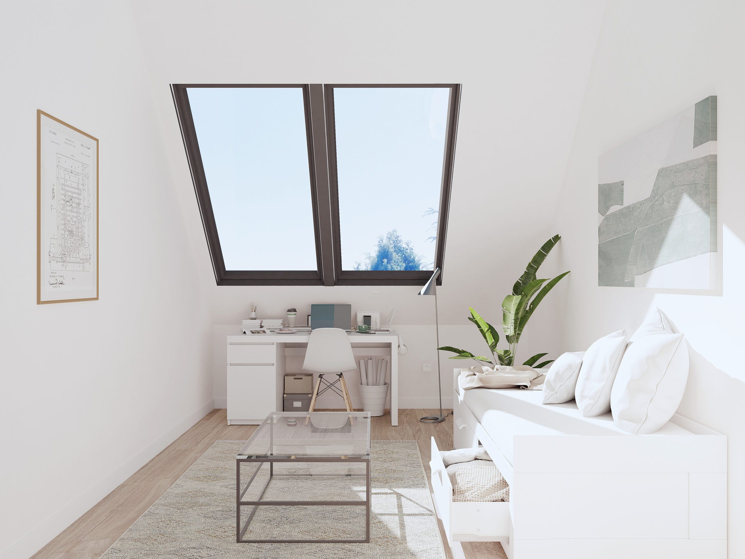 La arquitectura destaca por su amplitud, luminosidad y orientación sur, con amplias terrazas en cada estancia que maximizan la entrada de luz natural y ofrecen vistas al skyline de Madrid.