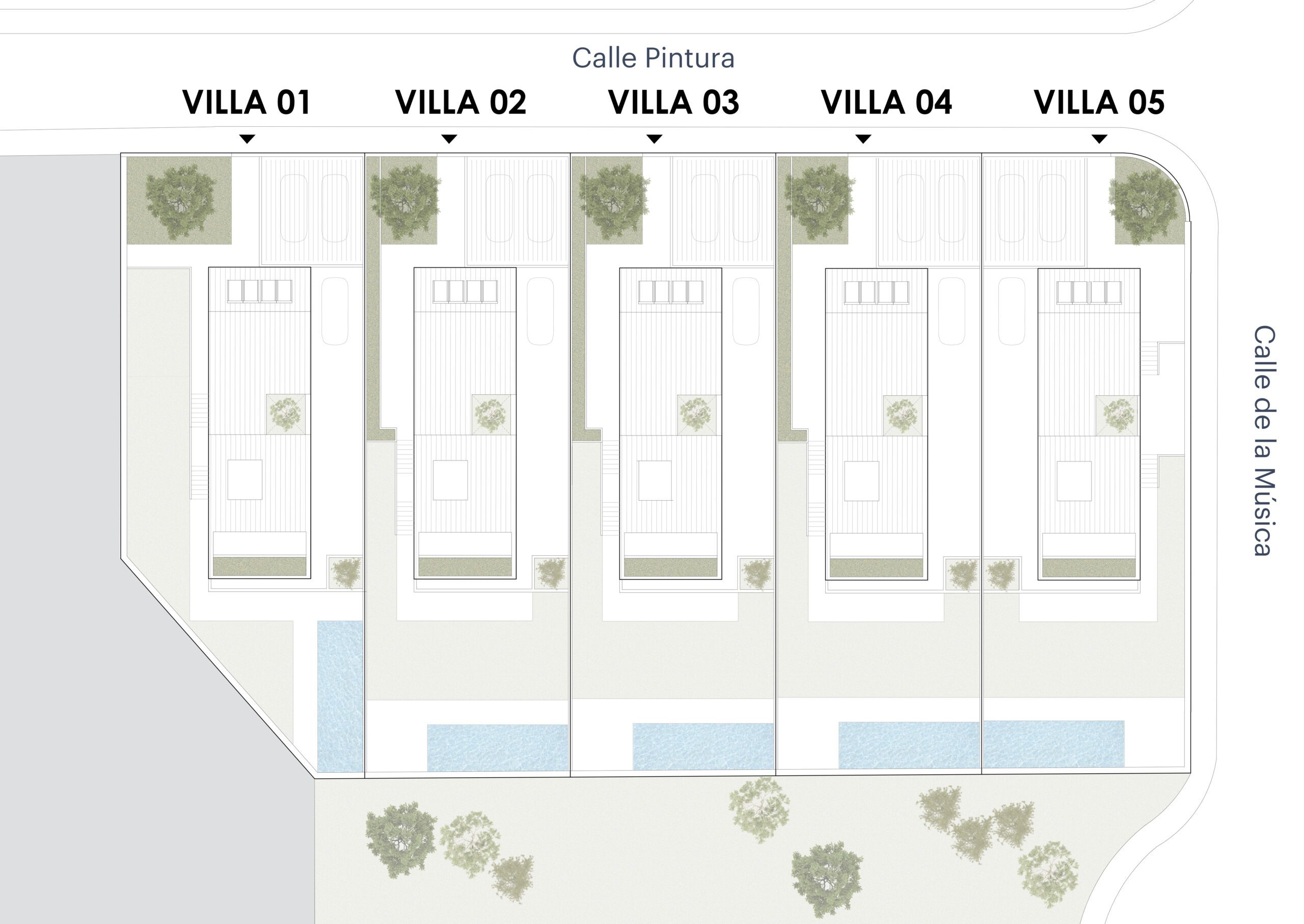 Cada Villa ha sido diseñada con un enfoque exclusivo, funcional y flexible, distribuyéndose en tres plantas más un semisótano polivalente con salida al jardín. Las parcelas, de 520 m², incluyen piscina privada, zonas verdes, espacio chill-out y aparcamiento para tres o más vehículos.